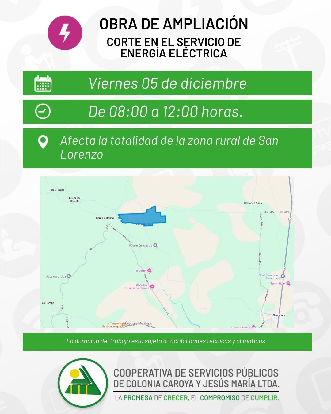⬛ Motivo: Obra de ampliación en la red existente de media tensión (13200 Voltios)